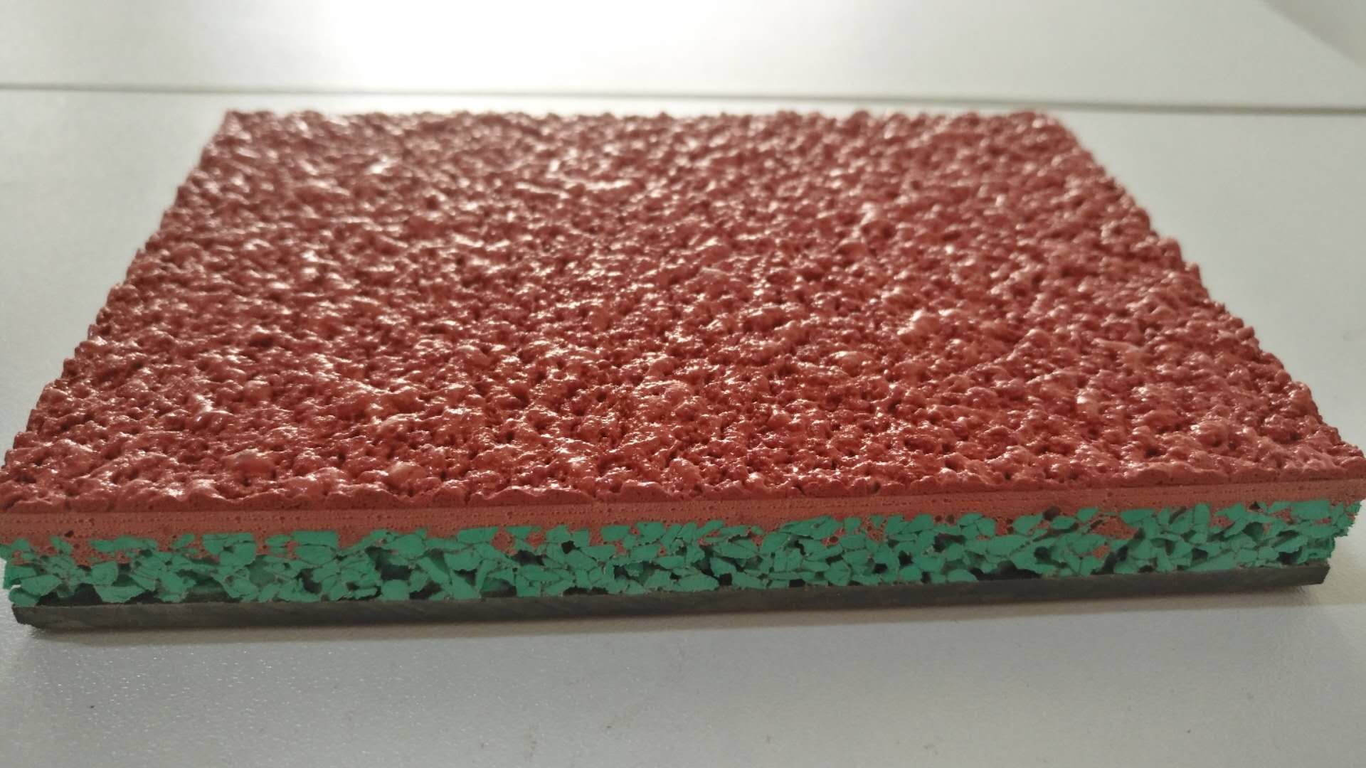 特点:结合了“透气型”和“混合型”跑道的工艺,下部弹性层与透气型跑道相同,上部与混合型跑道一致。